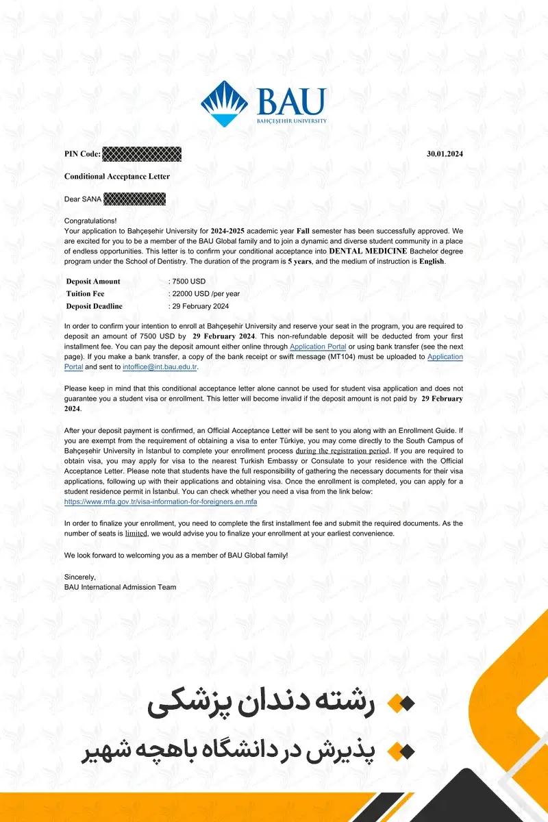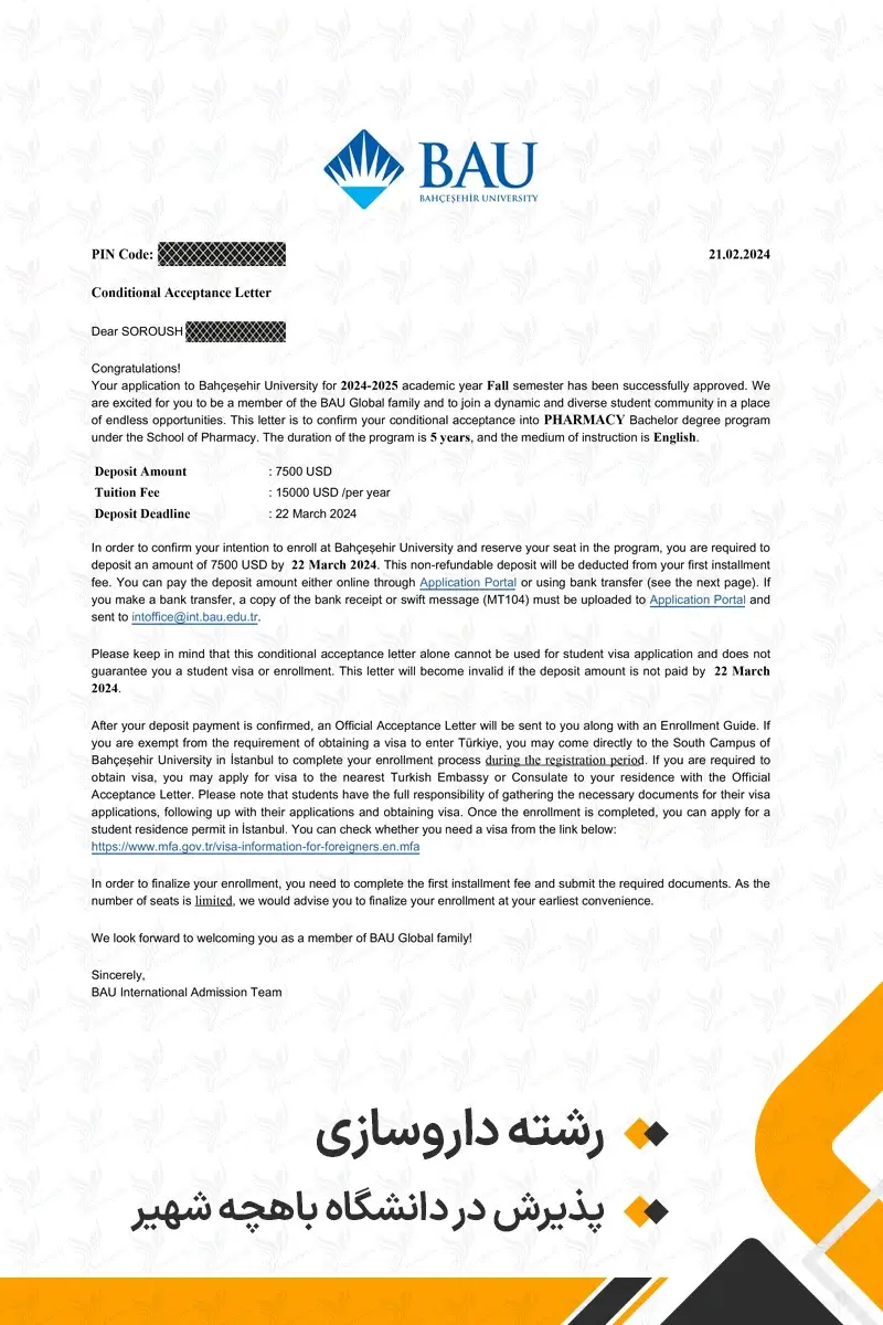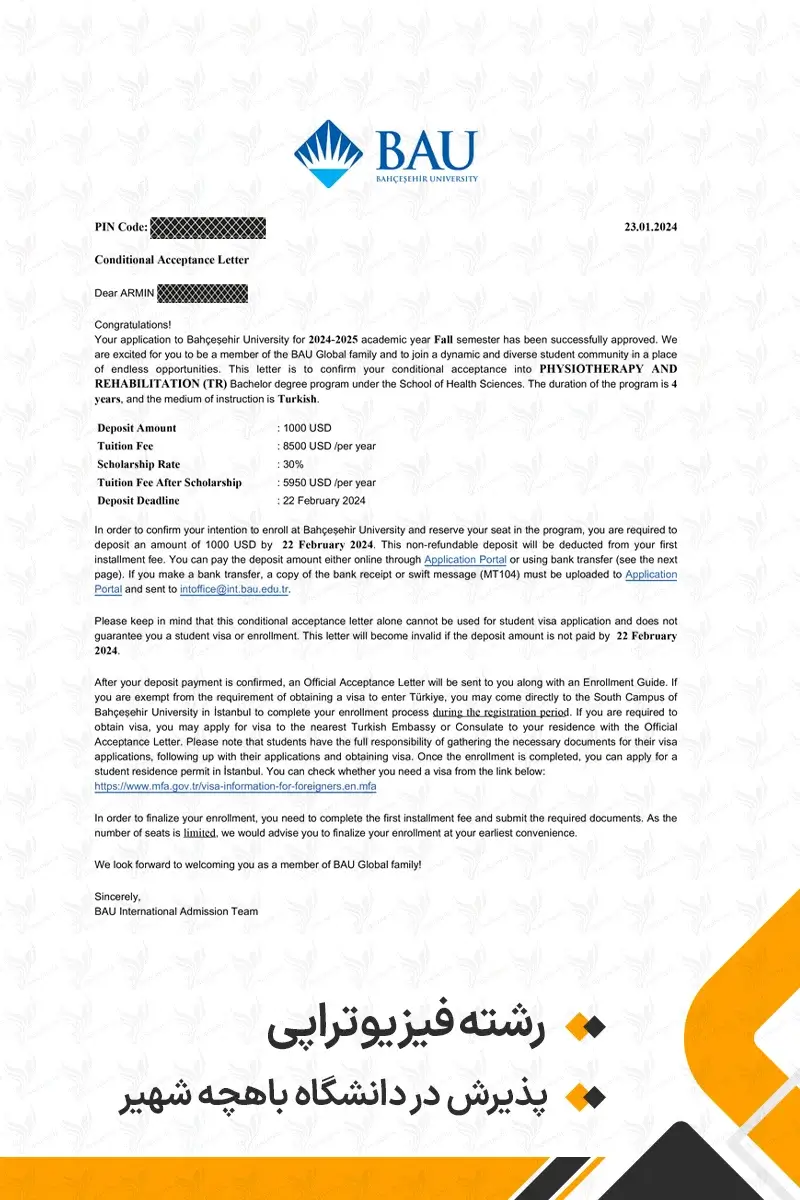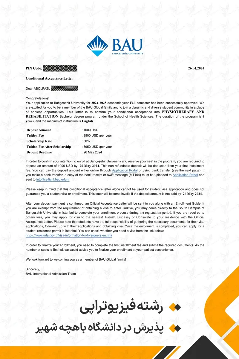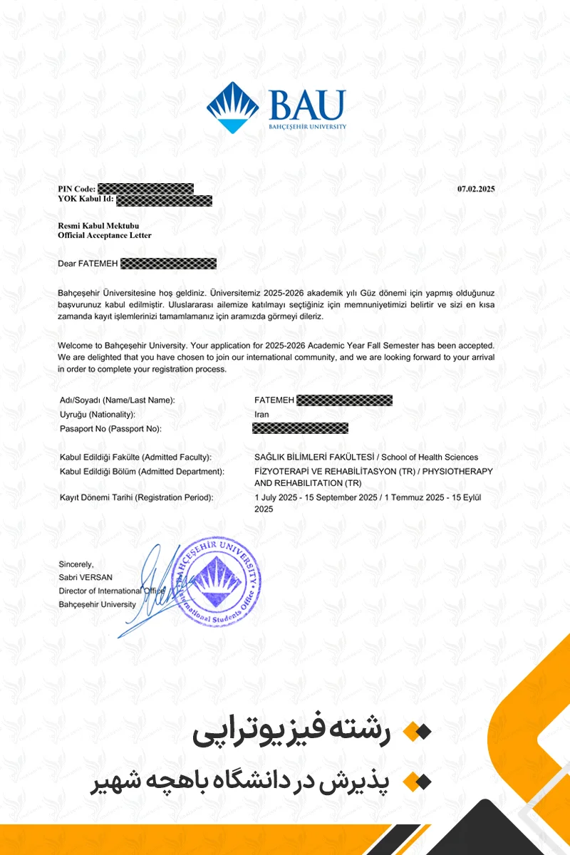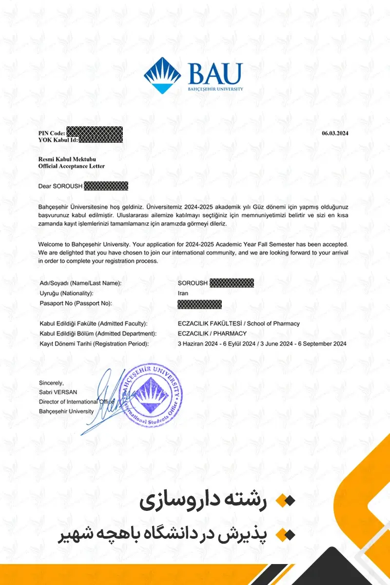 مراحل اخذ پذیرش از دانشگاه باهچه شهیر ترکیه