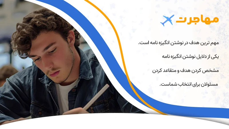 مهاجرت مهم ترین هدف در نوشتن انگیزه نامه است. یکی از دلایل نوشتن انگیزه نامه معرفی خود، شرایط و برنامه و مشخص کردن هدف و متقاعد کردن مسئولان آن دانشگاه برای انتخاب شماست.